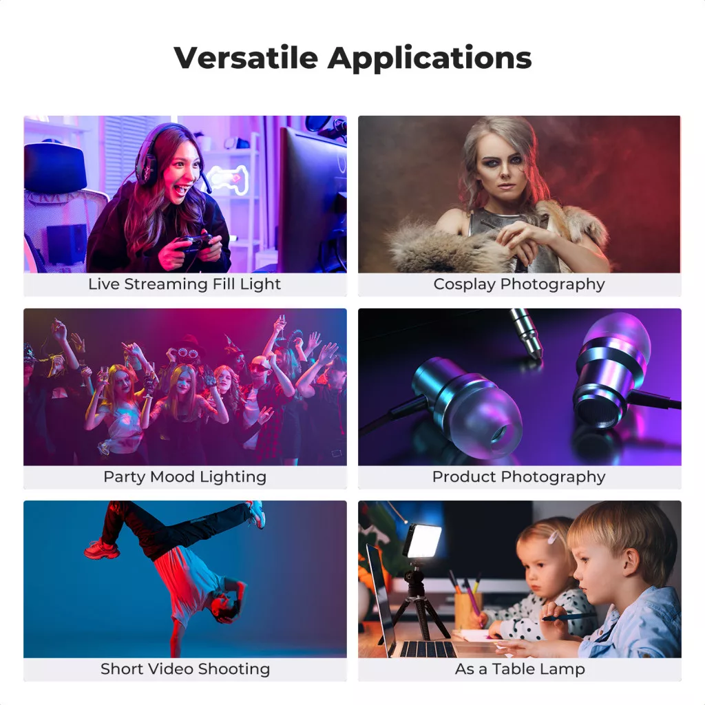 Ez a kompakt, erőteljes és sokoldalú RGB LED lámpa ideális társ minden kreatív projektben, ahol a professzionális világítás, hordozhatóság és rugalmasság egyszerre elvárás.