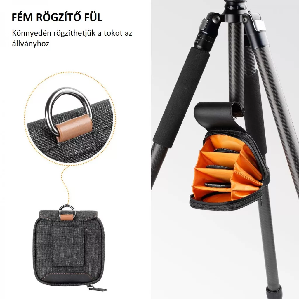Egyszerű hozzáférés: A fényképezőgép szűrő tasakjának kinyitása után láthatja és elérheti az összes szűrőt, kényelmesen és gyorsan.