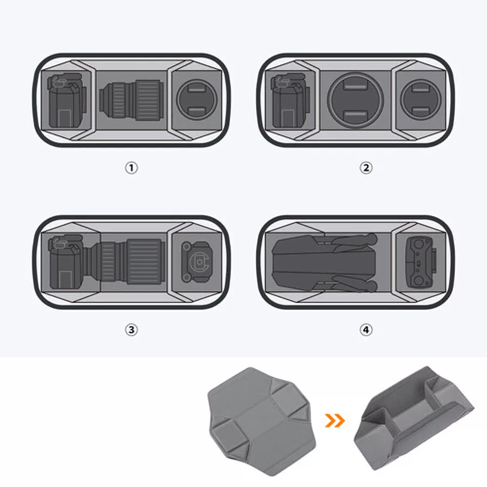 A táska belső részén több rekesz és zseb található, amelyek segítségével könnyedén rendszerezheted a tartozékokat, például az akkumulátorokat, memóriakártyákat, kábeleket és egyéb szükséges eszközöket. Ez biztosítja, hogy minden tárgy biztonságosan és könnyen hozzáférhetően tárolható legyen.