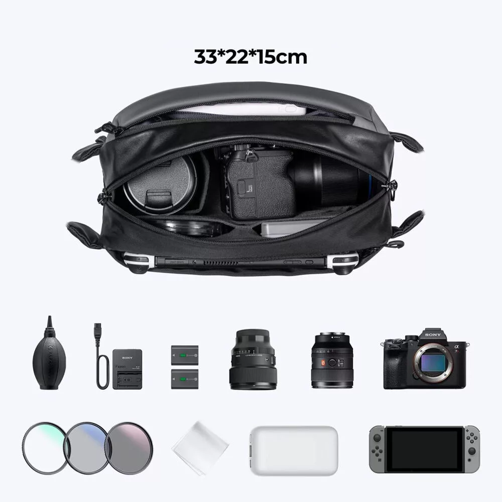 Ez a K&F Concept 2 az 1-ben sling bag praktikus választás fotósok számára, akik egy sokoldalú és stílusos táskát keresnek mindennapi használatra. A 10 literes kapacitás elegendő helyet biztosít a fényképezőgép és a szükséges kiegészítők számára, miközben kompakt méretének köszönhetően könnyedén hordozható és kényelmes viseletet biztosít.