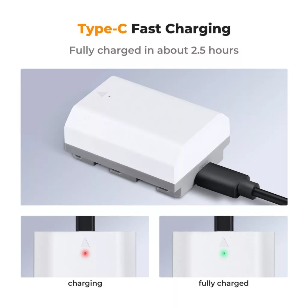 A K&F Concept NP-FZ100 akkumulátor szett ideális választás Sony Alpha sorozatú fényképezőgépekhez, ahol megbízható, hosszú üzemidejű energiaforrásra van szükség. A készletben két darab, egyenként 2600mAh kapacitású lítium-ion akkumulátor található, melyek USB-C porton keresztül közvetlenül tölthetők - külön töltő használata nélkül.