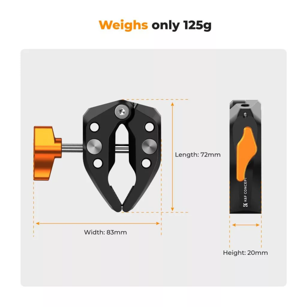 A K&F Concept MS15 Crab Claw Clip ideális választás mindazok számára, akik megbízható és sokoldalú rögzítési megoldást keresnek fotós felszerelésük számára.
