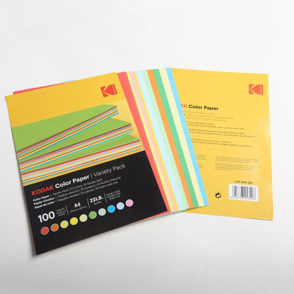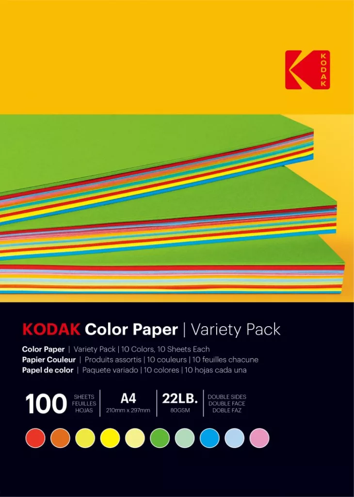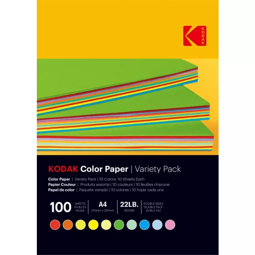 KODAK színes papír otthoni és irodai nyomtatáshoz - 10 kevert szín, 80g, A4, 100db