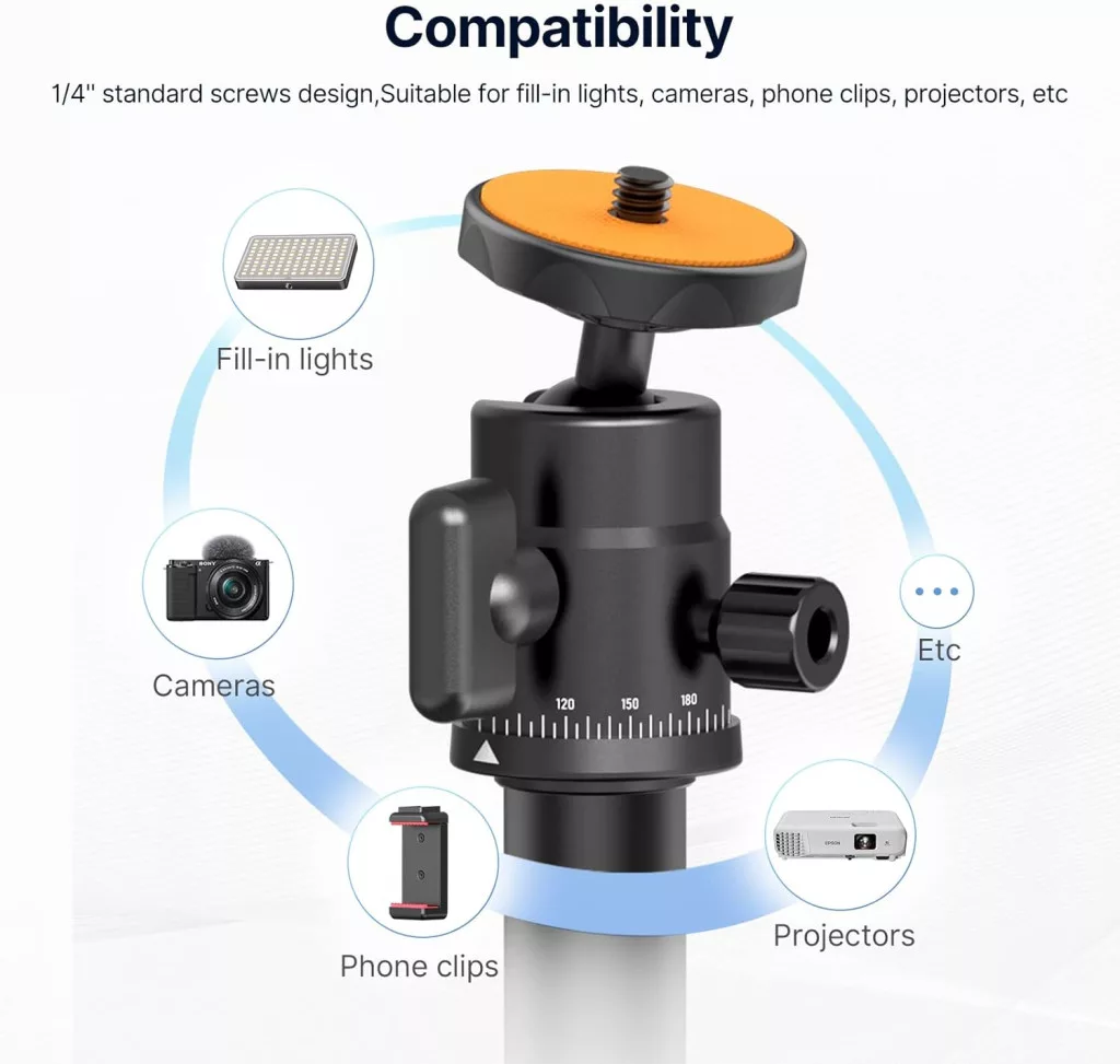 - Gömbfej: Lehetővé teszi a kamera vagy telefon precíz beállítását különféle szögekben.